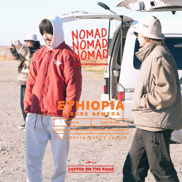 ETHIOPIA NIGUSE GEMEDA Location: Sidamo,Shantawene Process: Natural Flaver Notes: raspberry,peach,lemon Roast Level: Light Roast エチオピアのナチュラルプロセスで浅煎りのコーヒーを好きになった方も多いのではないでしょうか?NOMAD COFFEEの焙煎士もその一人です。 初代カップ・オブ・エクセレンス1位のニグセ・ゲメダの作品。南国ベリーのフルーティーな香りの酸味とジューシーな甘味。朝の目覚めにぴったりです。